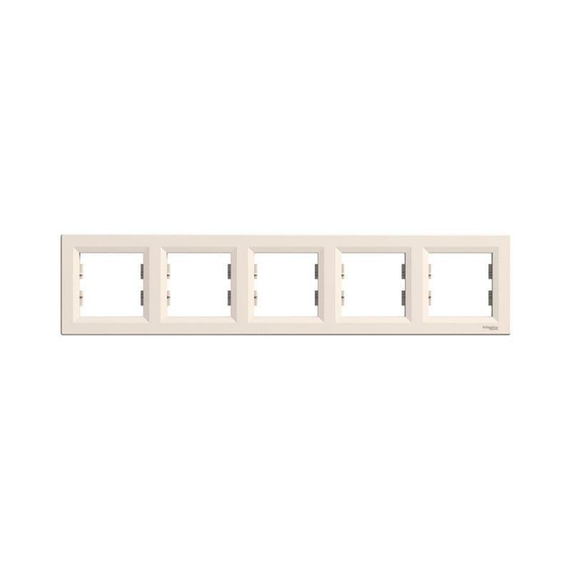 Рамка пятиместная горизонтальная, кремовая, серия Asfora, Schneider Electric (Асфора, Шнайдер электрик) предназначена для объединения пяти механизмов (выключатель, розетка, кнопка, диммер) в одну линию. Она изготовлена из ударопрочного негорючего полимера. Внешняя поверхность ее устойчива к воздействию ультрафиолета.