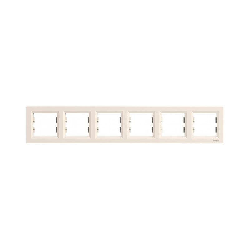 Рамка шестиместная горизонтальная, кремовая, серия Asfora, Schneider Electric (Асфора, Шнайдер электрик) предназначена для объединения шести механизмов (выключатель, розетка, кнопка, диммер) в одну линию. Она изготовлена из ударопрочного негорючего полимера. Внешняя поверхность ее устойчива к воздействию ультрафиолета.
